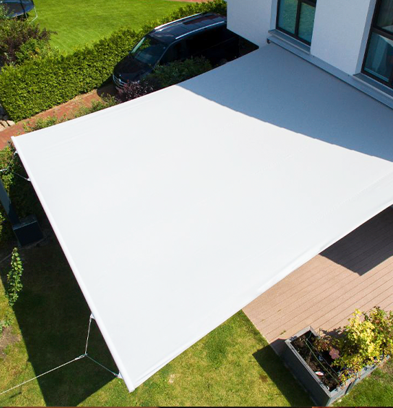 SunShield(尚曬)是 Dubau(迪博)旗下的最新品牌。Dubau成立于1972年,總部位于德國基爾,是一家專業開發、制造和銷售高端遮陽產品的廠商。Dubau 歷時3年開發出SunShield戶外飛翼簾。SunShield結合了戶外伸縮篷與遮陽帆的各自優點,既能像伸縮篷一樣通過電機將面料卷入罩盒,又能實現如緊密拉伸的遮陽帆一樣的超大規格尺寸,該產品融合了出色的設計、卓越的技術和完美的功能,通過使用最好的材料,將其與奧地利Sattler高品質戶外面料結合,實現高效遮陽、有效防水及超長耐用性能。