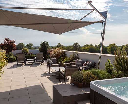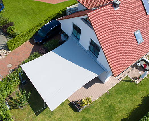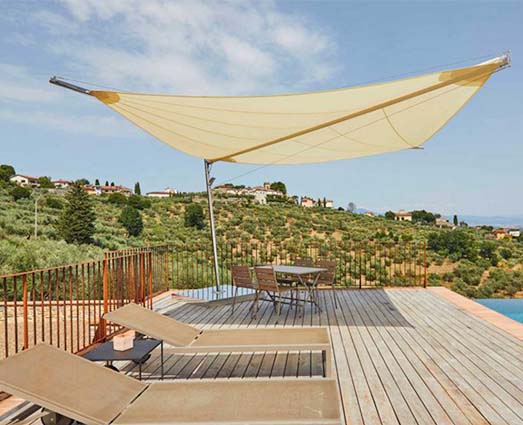 戶外獨立式飛翼簾 單幅最大尺寸: 7000x7000mm Kheope 13 單幅最大尺寸: 9200x9200mm 需四個支撐點